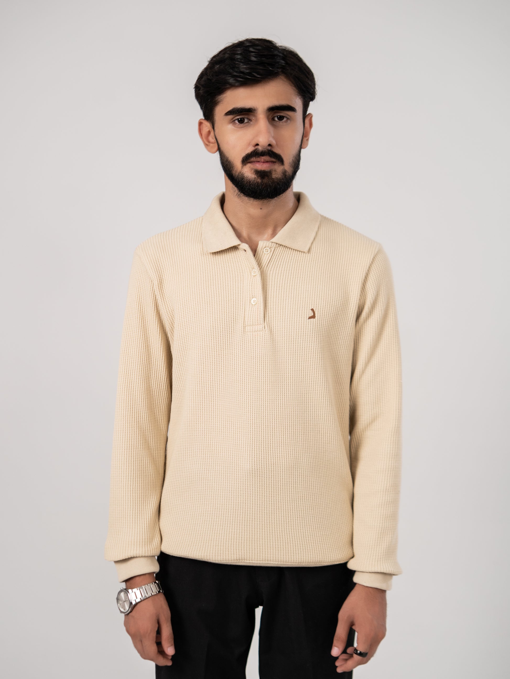 CLASSIC KNIT POLO SWEATER - BEIGE