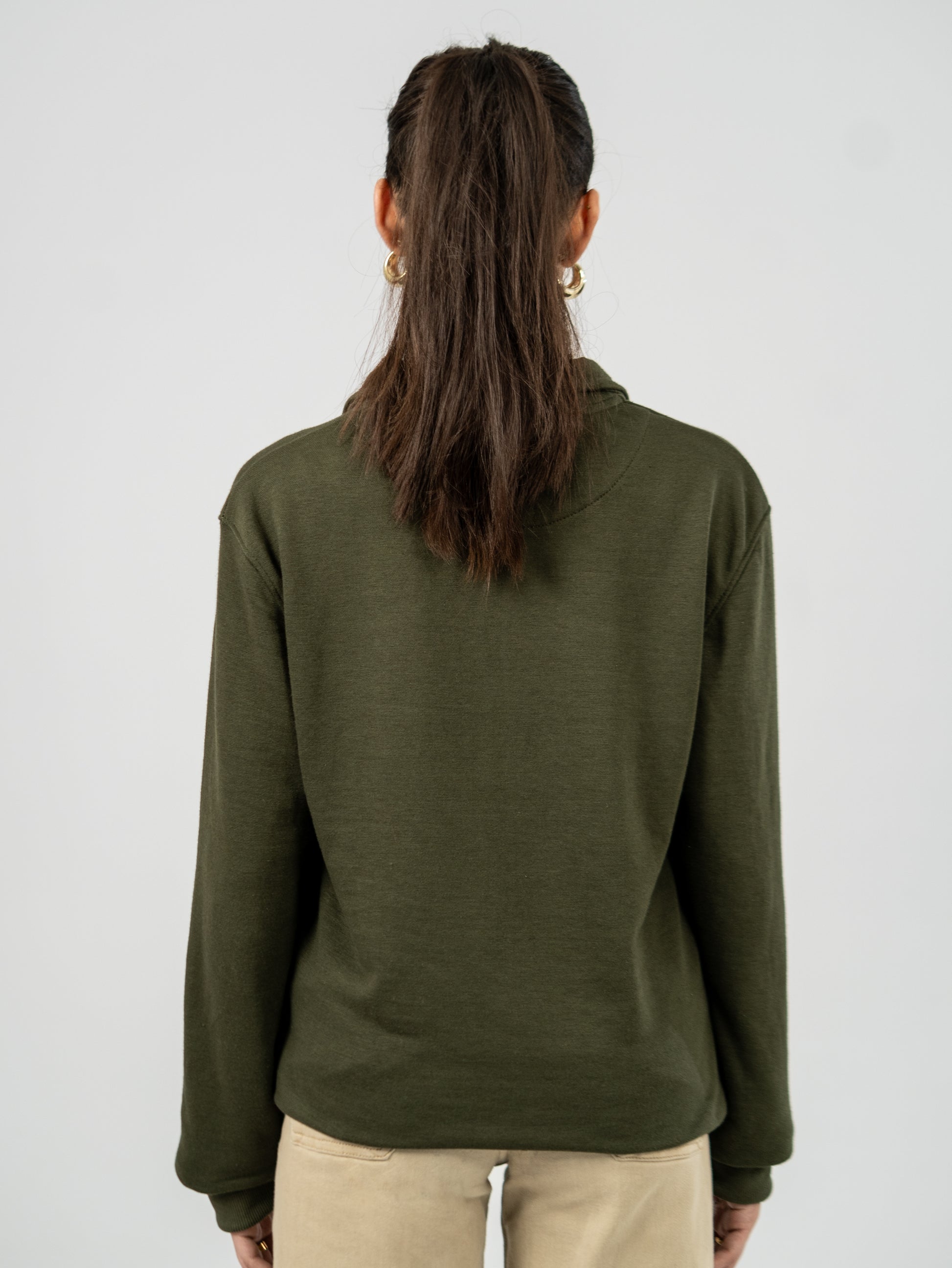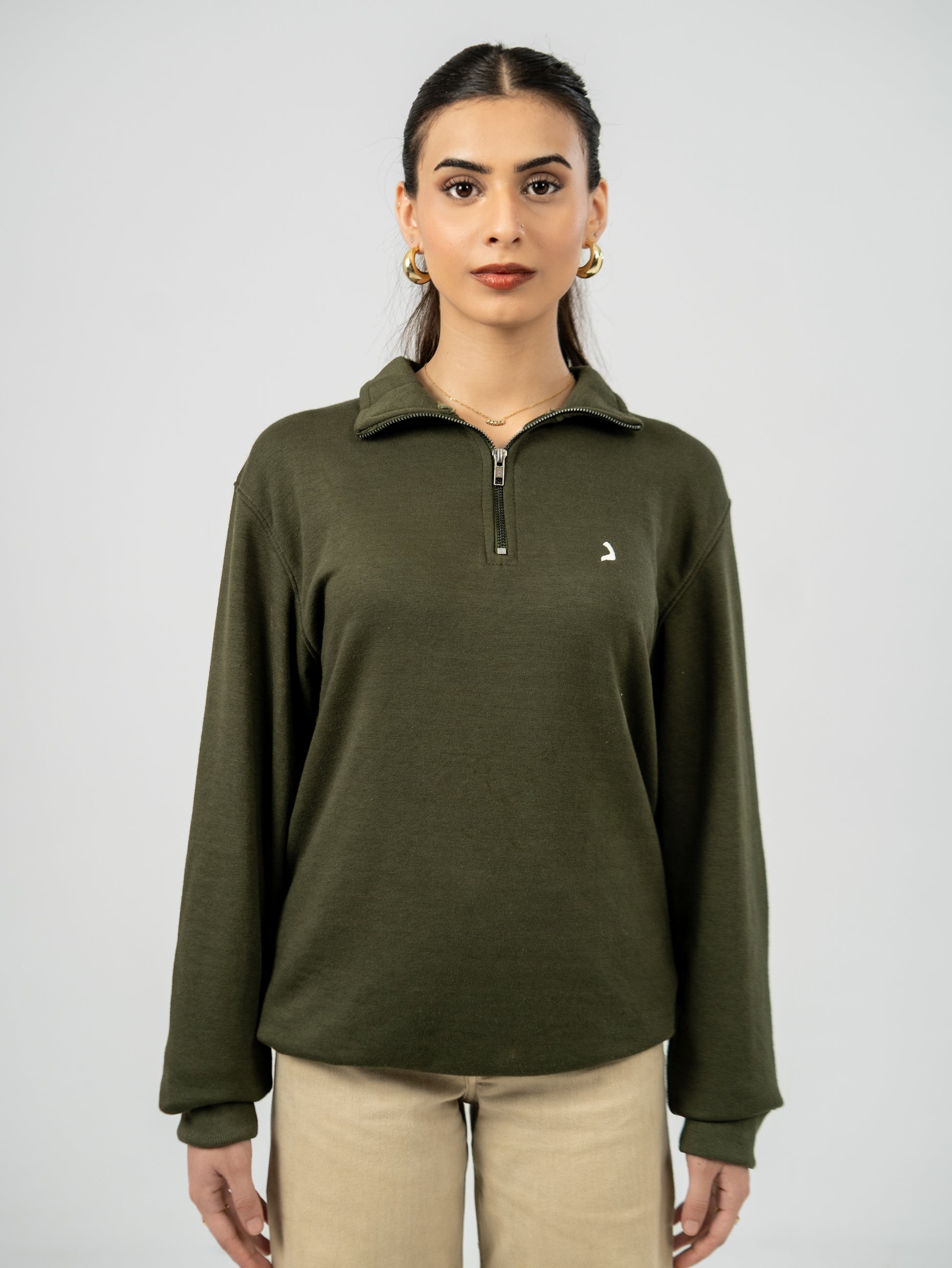 This quarter-neck zipper top offers a refined, relaxed fit designed for women seeking both comfort and style. The elegant zipper detail enhances the neckline, providing a sophisticated touch while allowing adjustable ventilation. Crafted to ensure ease of movement, it pairs seamlessly with casual or semi-formal attire, making it a versatile addition to any wardrobe.