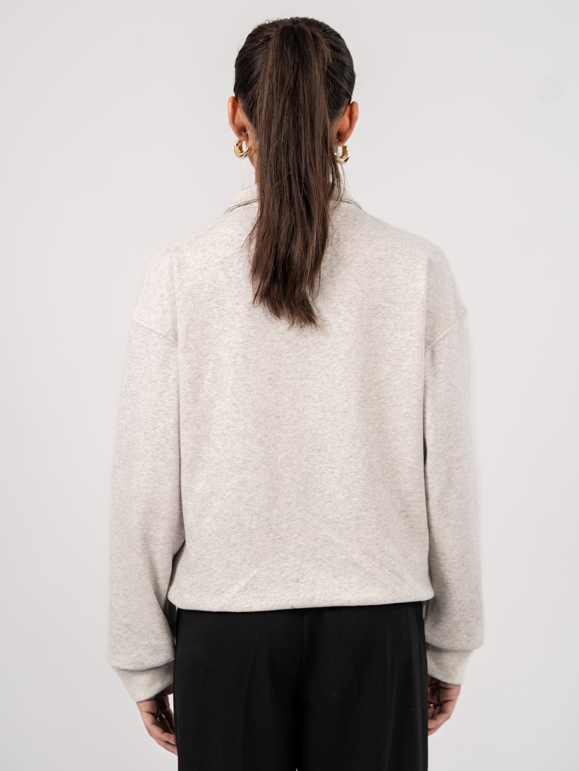 This quarter-neck zipper top offers a refined, relaxed fit designed for women seeking both comfort and style. The elegant zipper detail enhances the neckline, providing a sophisticated touch while allowing adjustable ventilation. Crafted to ensure ease of movement, it pairs seamlessly with casual or semi-formal attire, making it a versatile addition to any wardrobe.